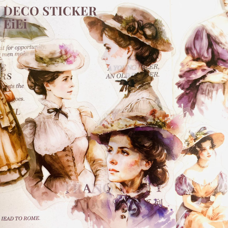 即納 人物 クリアシール 100枚 大容量 レトロ 海外 外国 人物 シール 欧米 大人 レディース ファッション ドレス ガール...