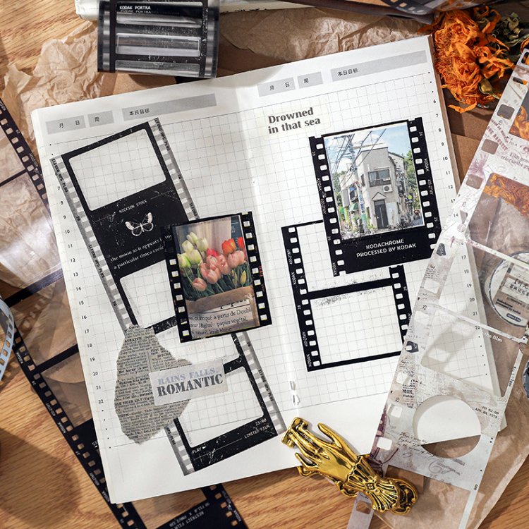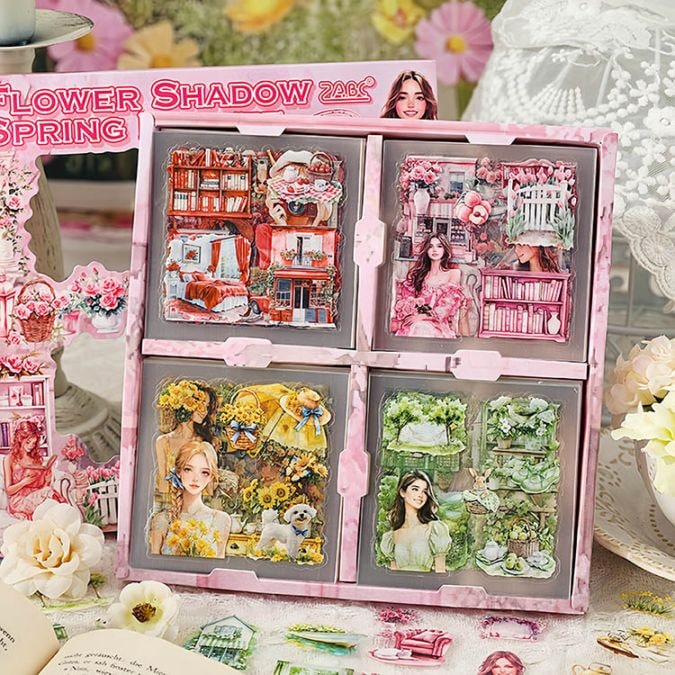 海外 シールブック 大容量 異素材 20枚つづり 型抜き コラージュ素材 セット PET 半透明シール 耐水 海外シール フレーム...