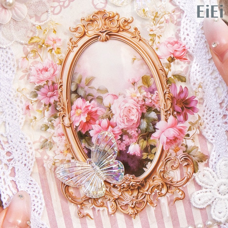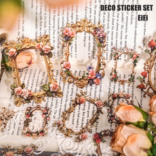 即日出荷 クリアシール 額縁 花柄 魔法 ミラー フレーム イラスト 透明 シール 海外 コラージュ 素材 枠 シール フラワー ...