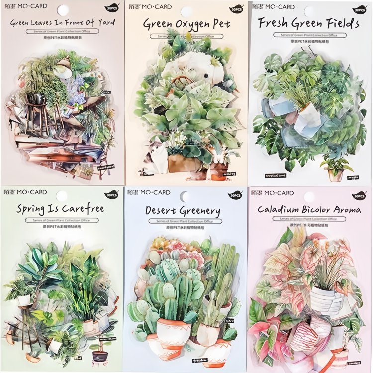即日出荷 観葉植物 クリアシール コラージュ素材 シール 動物柄 縁起 良い 観葉 植物柄 多肉植物 観賞植物 鉢植え イラスト ...