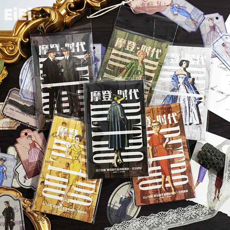 レトロ 人物シール ファッション コラージュ 素材 欧米 大人 紳士 ドレス ガール 女の子 タグ シール 海外ステッカー 海外シ...