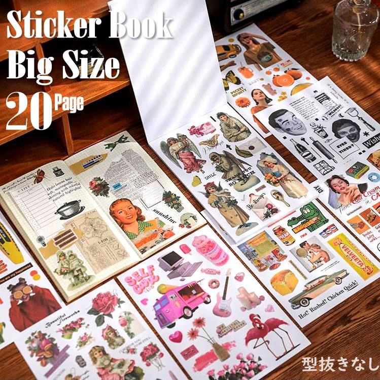 即日出荷 大容量 マステシールブック◆20ページ 型抜きなし 大きめ◆ コラージュ素材 海外ステッカー 海外シール シールシート ...