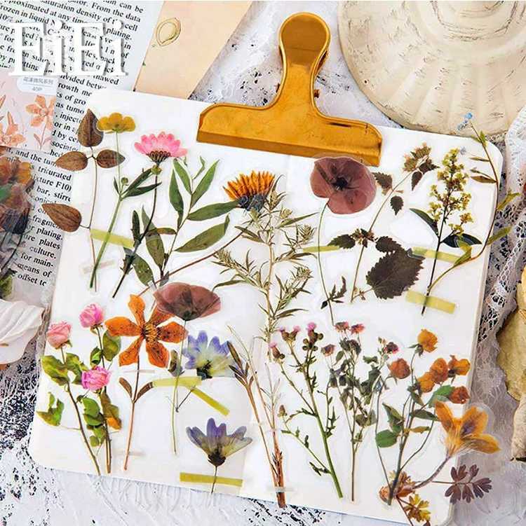 即日発送/海外 フレークシール ステッカー PET クリア 植物 花 フラワー 葉 ドライフラワー チューリップ ジャンクジャーナ...