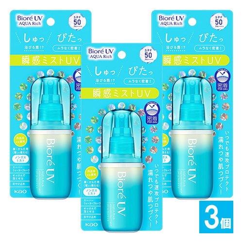 ビオレUV アクアリッチ アクアプロテクトミスト 60mL×3個セット【花王 Kao】瞬感ミストUV いつでも速攻プロテクト 濡れ...