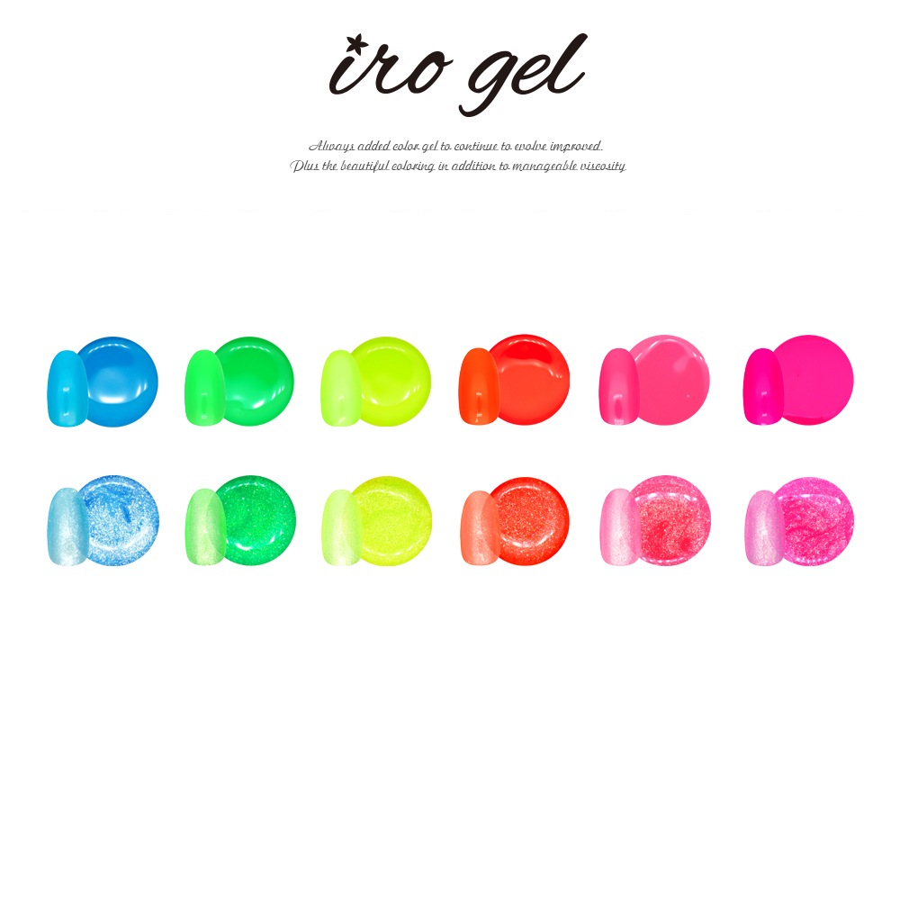 【ネコポス送料無料】ジェルネイル カラージェル irogel 新色12色セット[カラー品番:34-35] ネオンカラー