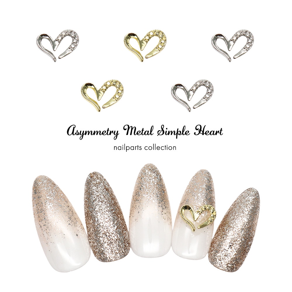 【ネコポス送料無料】ネイルパーツ アシンメトリーメタルシンプルハートパーツ [ゴールド 金/シルバー 銀] 2個入り
