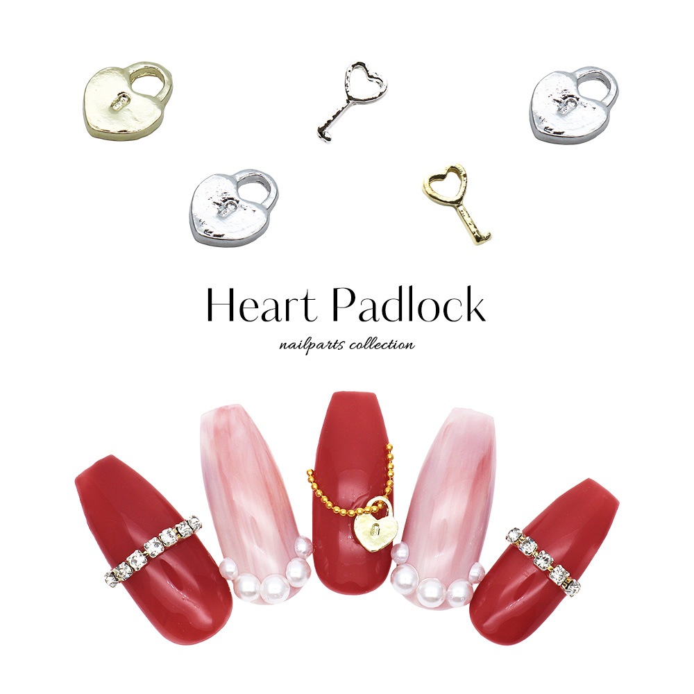 【ネコポス送料無料】ネイルパーツ ハート南京錠パーツ 全4種 [ゴールド/シルバー] 5個入り