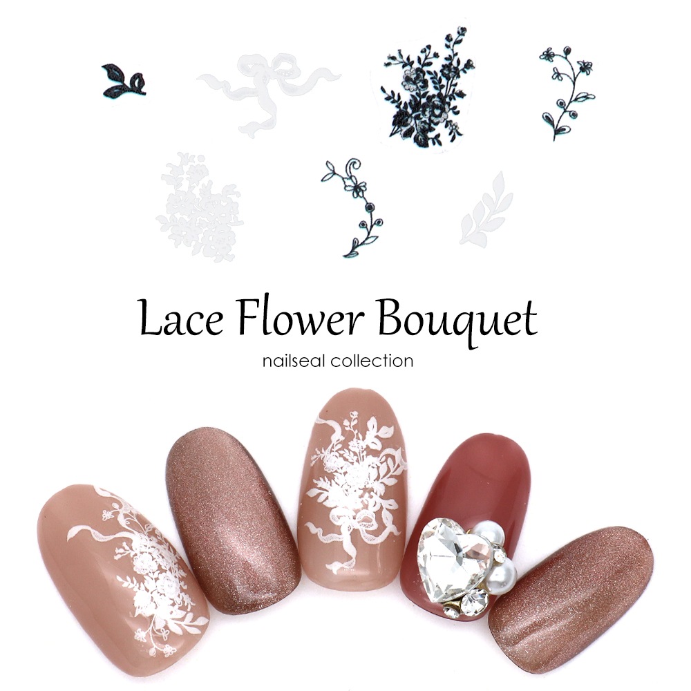 【ネコポス送料無料】ネイルシール レースフラワーブーケシール [KO99/KO98] [ホワイト 白/ブラック 黒] 全2色