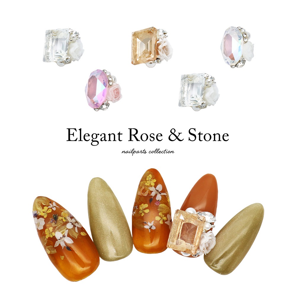 【ネコポス送料無料】ネイルパーツ エレガントローズ&ストーンパーツ 全4種 2個入り