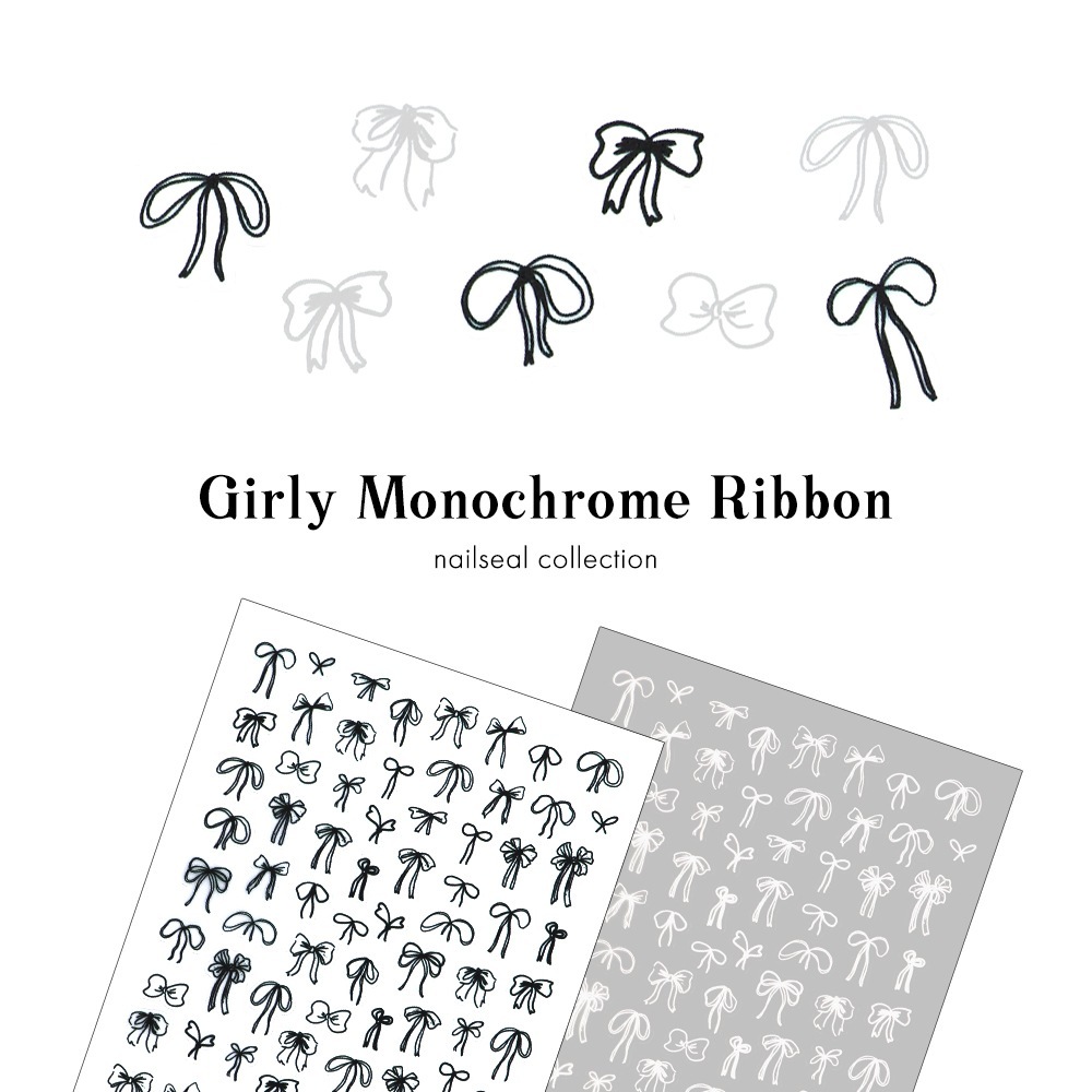 【ネコポス送料無料】ネイルシール ガーリーモノクロリボンシール [ホワイト 白/ブラック 黒] 全2色