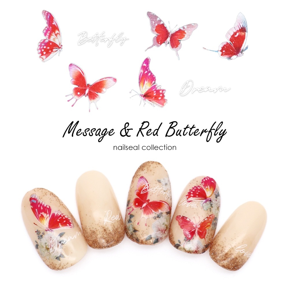【ネコポス送料無料】ネイルシール メッセージ&レッドバタフライシール [KO916]