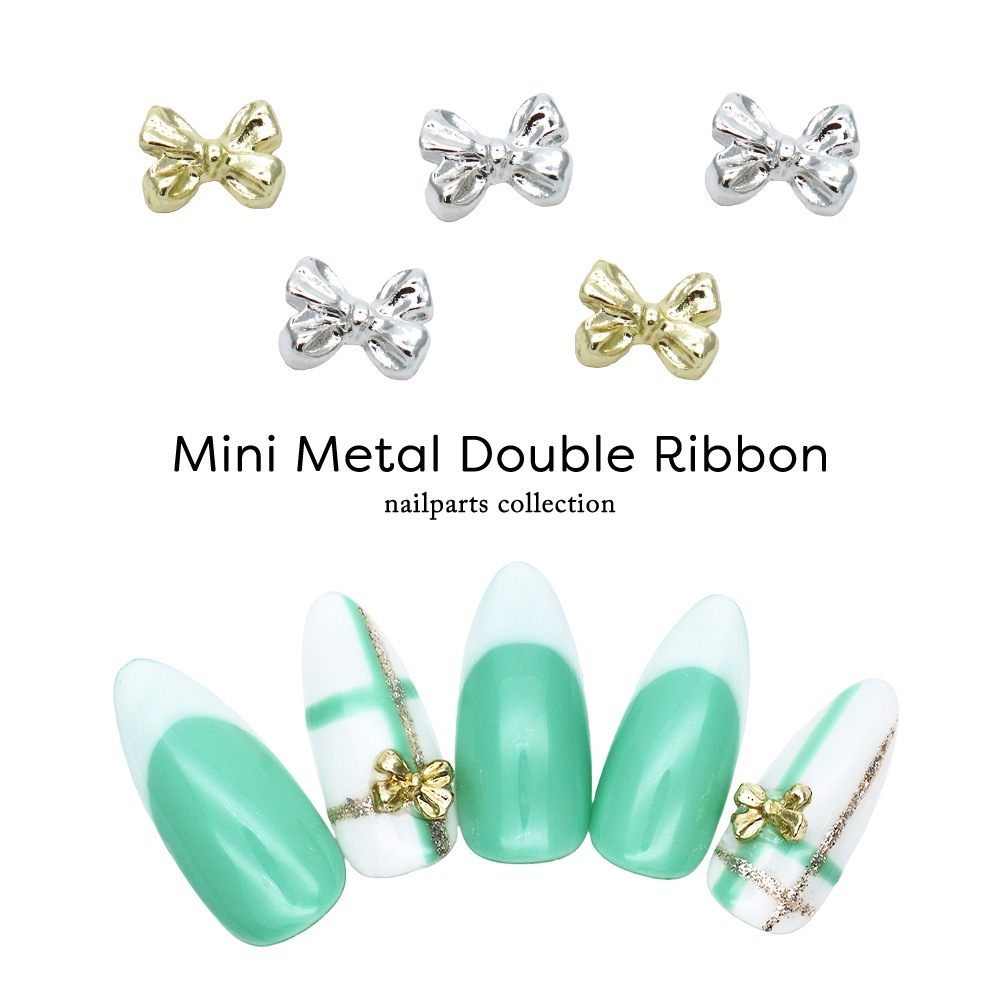 【ネコポス送料無料】ネイルパーツ ミニメタルダブルリボンパーツ [ゴールド 金/シルバー 銀] 5個入り