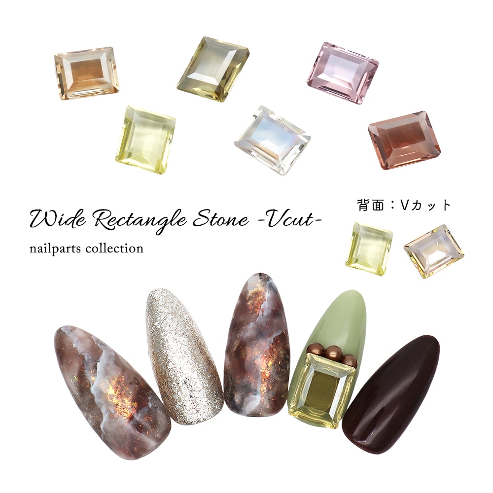 【ネコポス送料無料】ラインストーン ワイドレクタングルストーン Vカット 全6種 3個入り