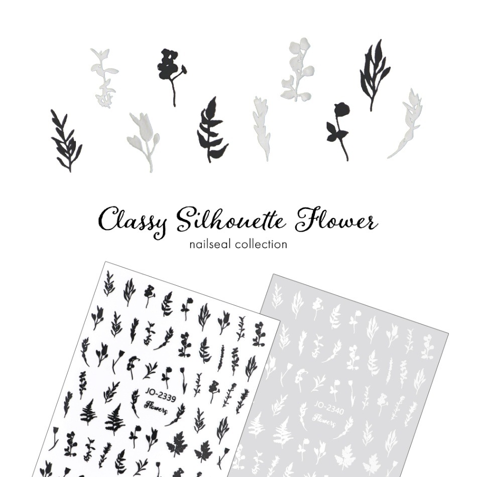 【ネコポス送料無料】ネイルシール クラッシィシルエットフラワーシール [ブラック 黒/ホワイト 白] 全2色