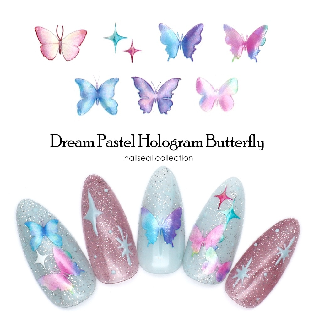 【ネコポス送料無料】ネイルシール ドリームパステルホログラムバタフライシール [KO898]