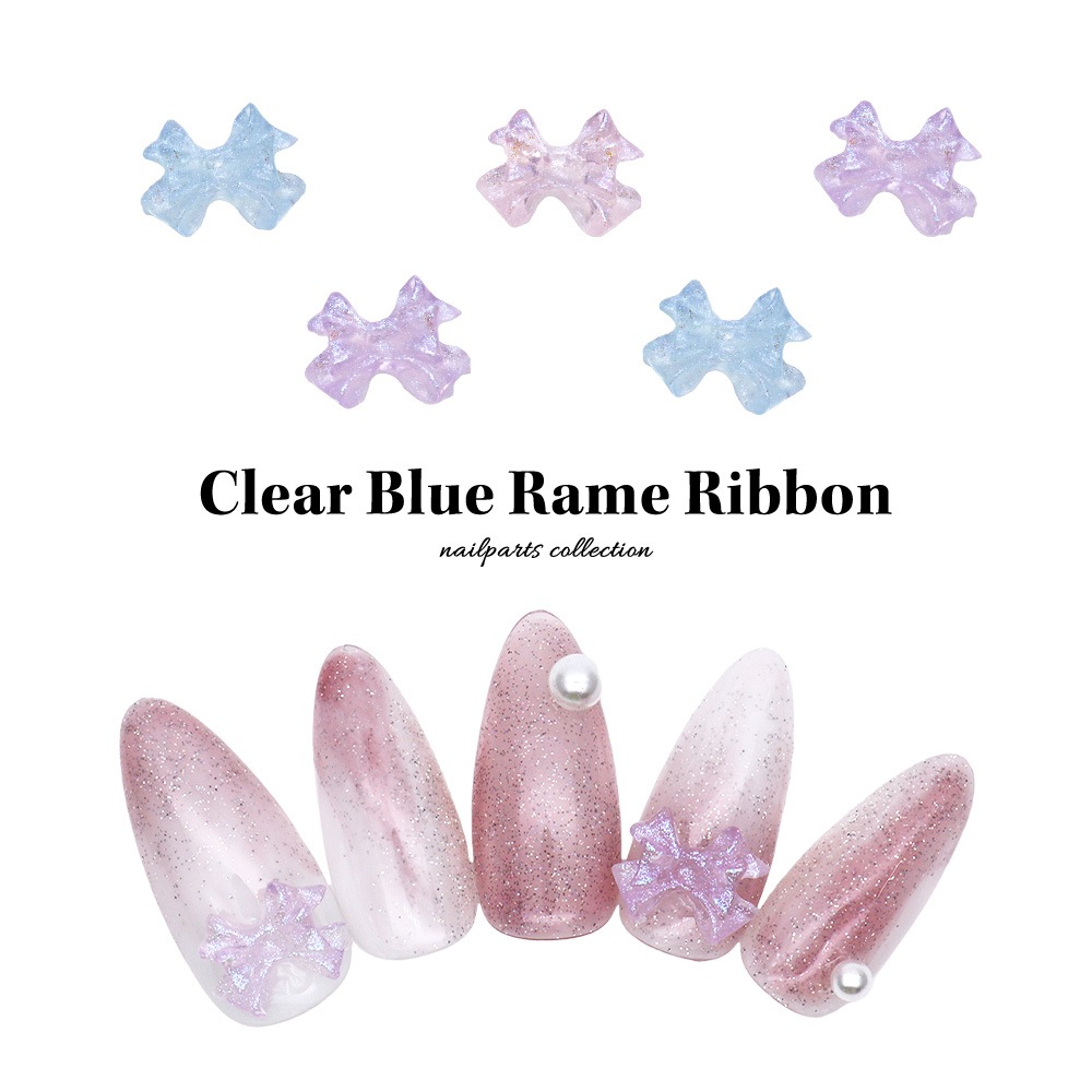 【ネコポス送料無料】ネイルパーツ クリアブルーラメリボンパーツ 全3種 [10個入り]