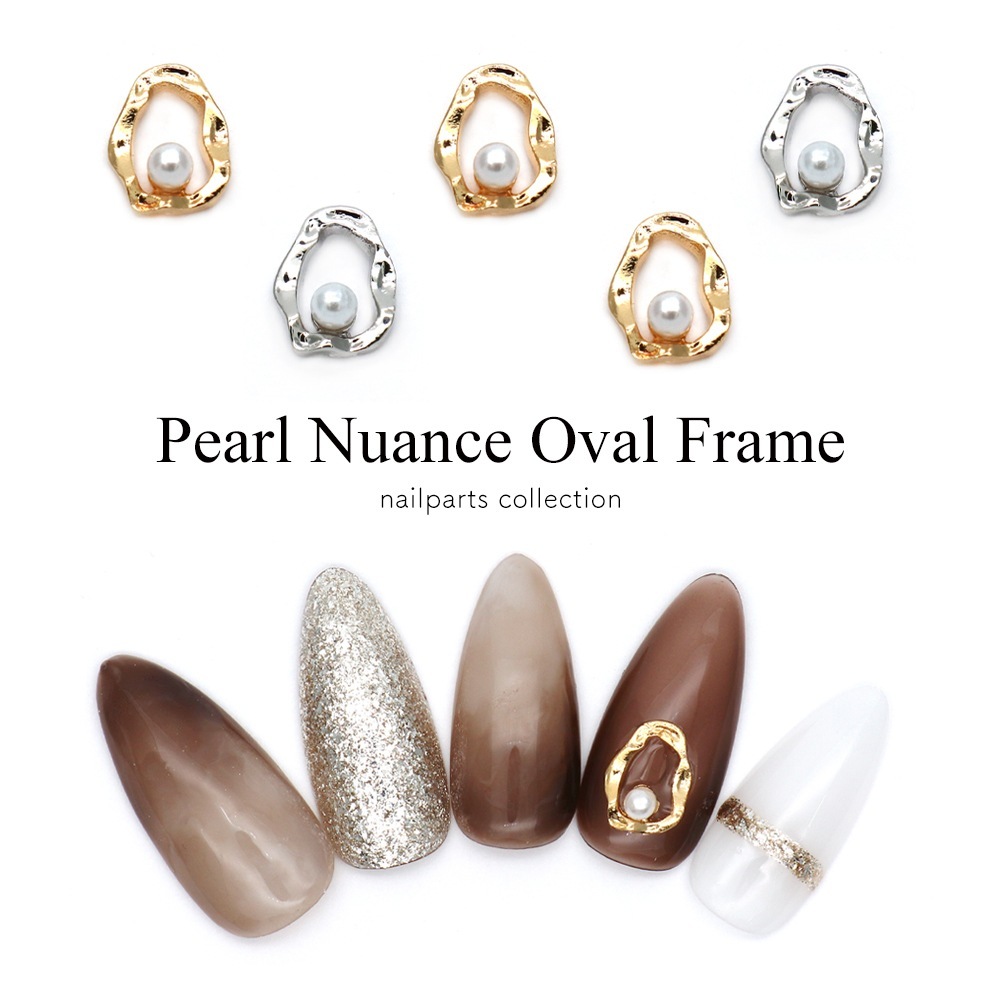 【ネコポス送料無料】ネイルパーツ パール付きニュアンスオーバルフレームパーツ [ゴールド 金/シルバー 銀] 3個入り
