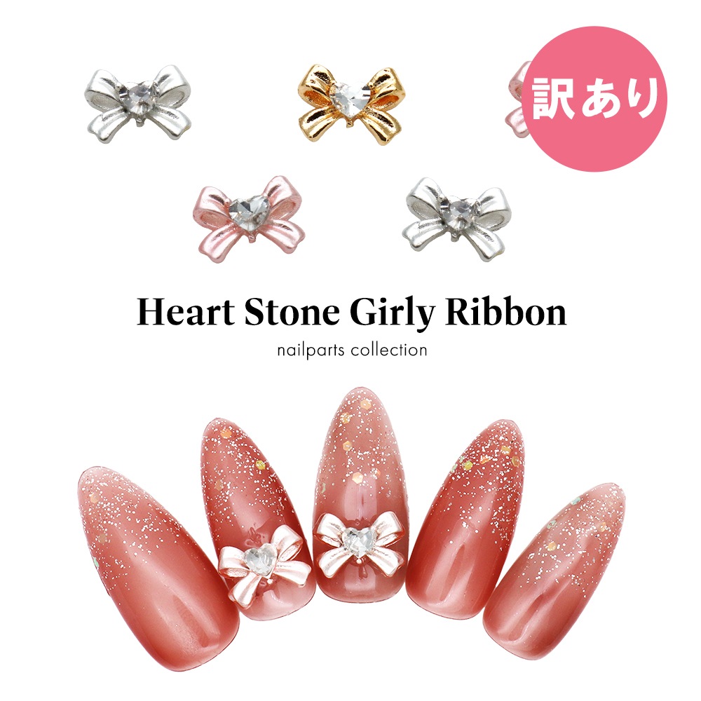 【ネコポス送料無料】【訳あり】ネイルパーツ ハートストーン付きガーリーリボンパーツ [ゴールド/シルバー/ピンク] 全3色 2個入