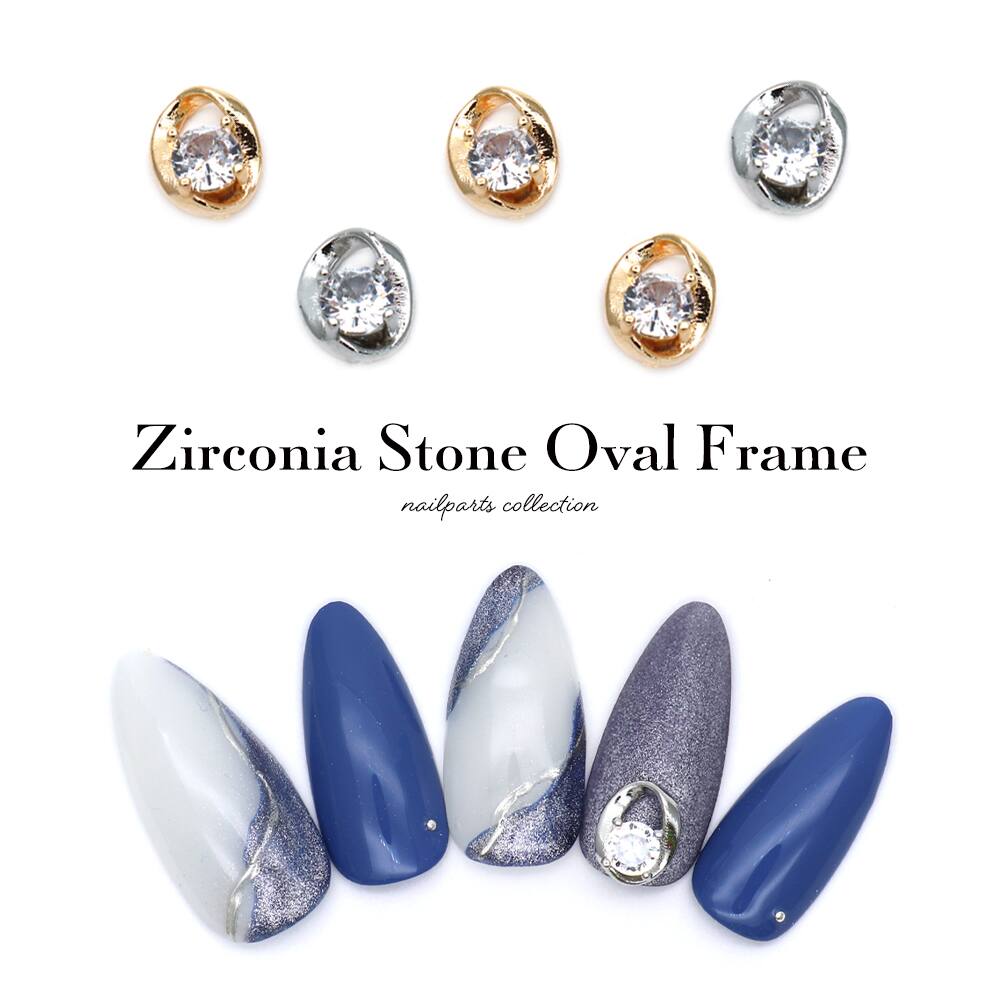 【ネコポス送料無料】ネイルパーツ ジルコニア製 ジルコニアストーン付きオーバルフレームパーツ [ゴールド 金/シルバー 銀] ...