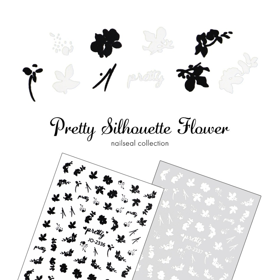 【ネコポス送料無料】ネイルシール プリティシルエットフラワーシール [ブラック 黒/ホワイト 白]全2色