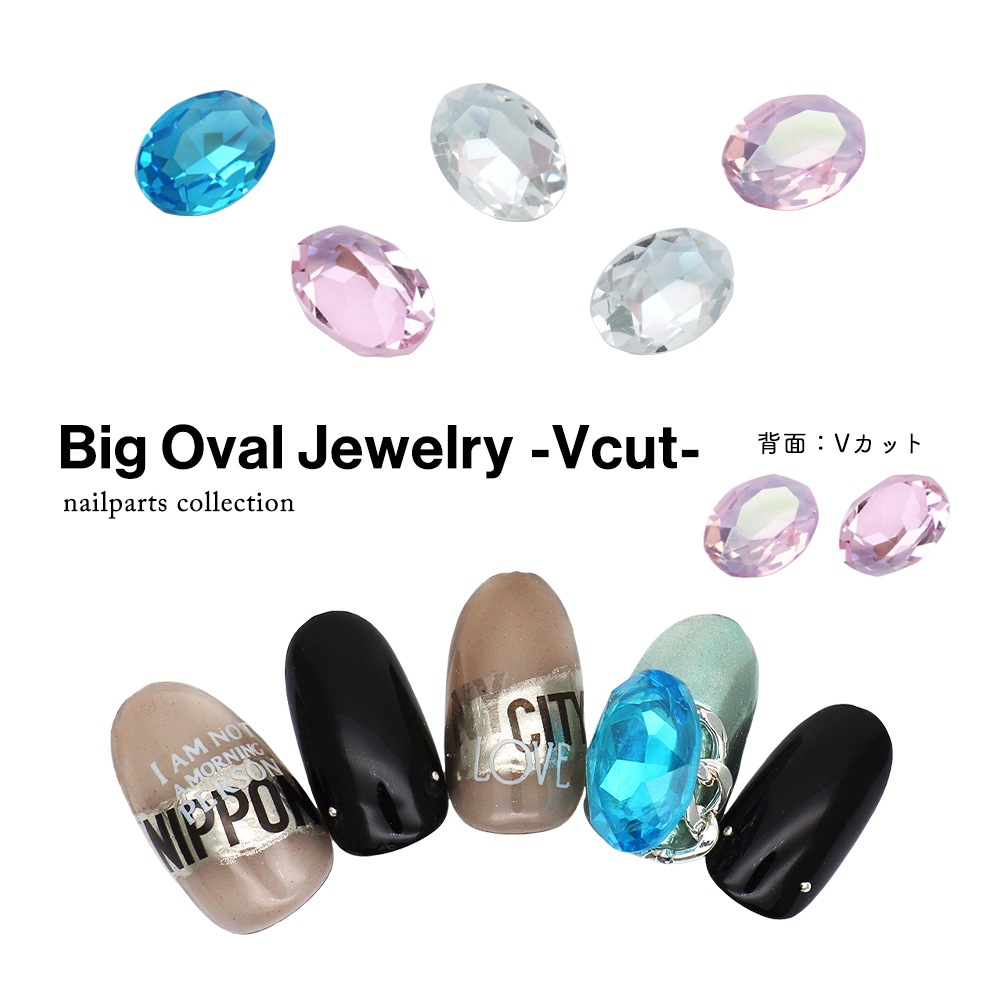 【ネコポス送料無料】ラインストーン ビッグオーバルジュエリー Vカット 全3種 2個入り