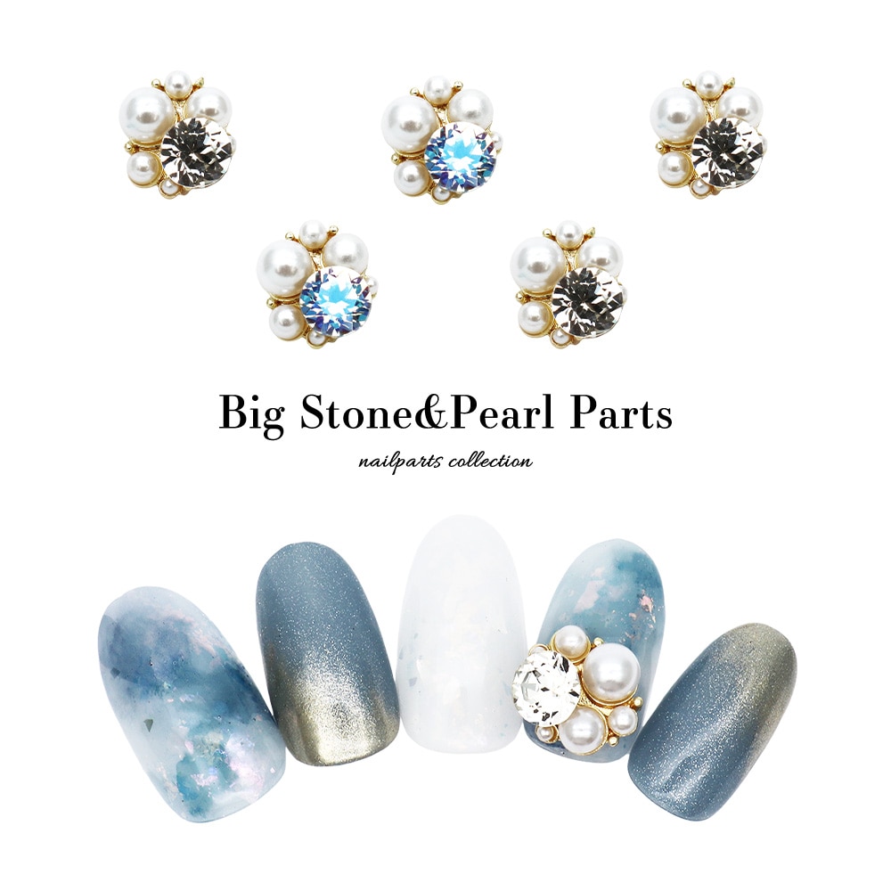 【ネコポス送料無料】ネイルパーツ ビッグストーン&パールパーツ [クリスタル/オーロラ] 全2色 2個入り