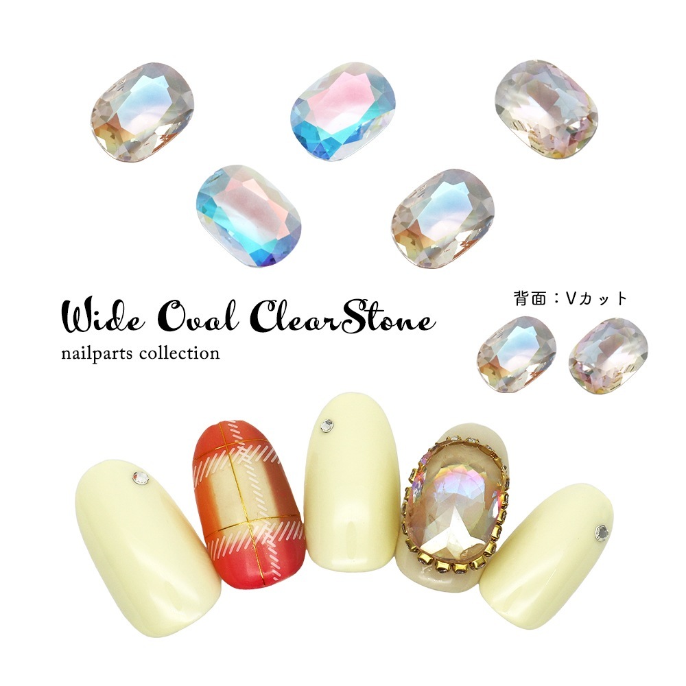 【ネコポス送料無料】ラインストーン ワイドオーバルクリアストーン 全2種 2個入り