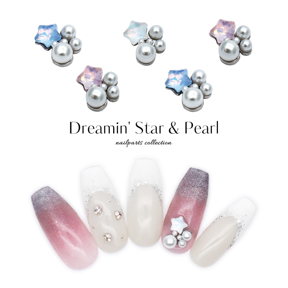 【ネコポス送料無料】ネイルパーツ ドリーミン スター&パールパーツ 全3種 2個入り