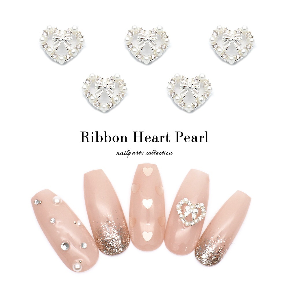 【ネコポス送料無料】ネイルパーツ リボン付きハートパールパーツ 1個入