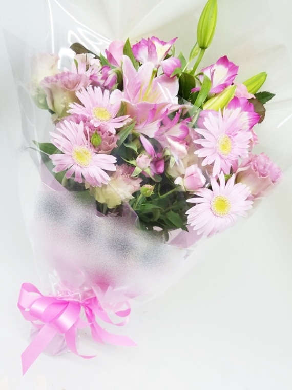 全国配送可能! ピンクユリ入り ピンク系 花束 bqt-032