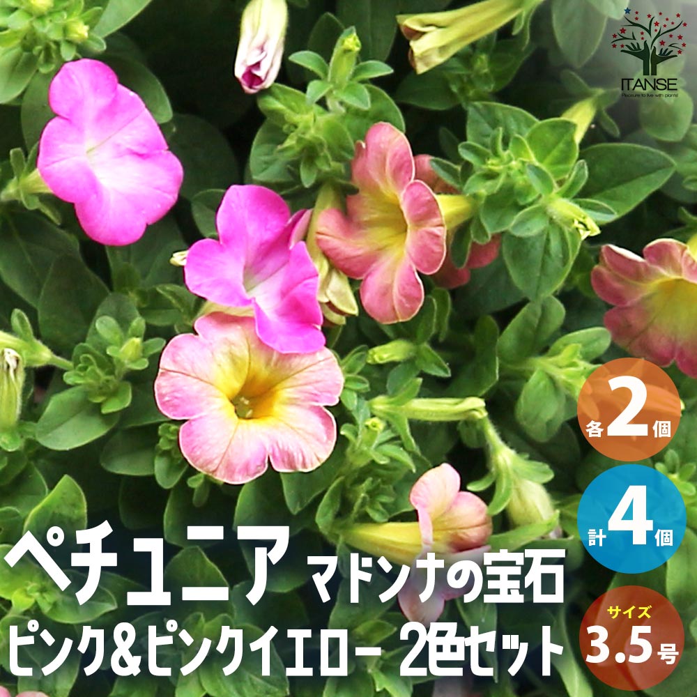 ペチュニア マドンナの宝石 ピンク&ピンクイエロー 各2個セット【花苗 3.5号/お買い得4個セット】