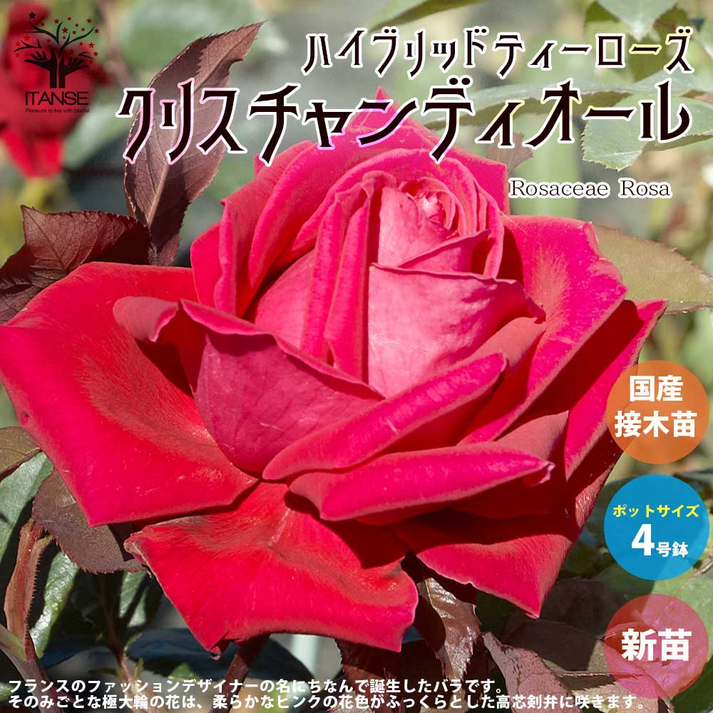 薔薇の苗 クリスチャンディオール (四季咲きハイブリッドティーローズ)【花苗新苗4号ポット 国産接ぎ木苗/1個売り】