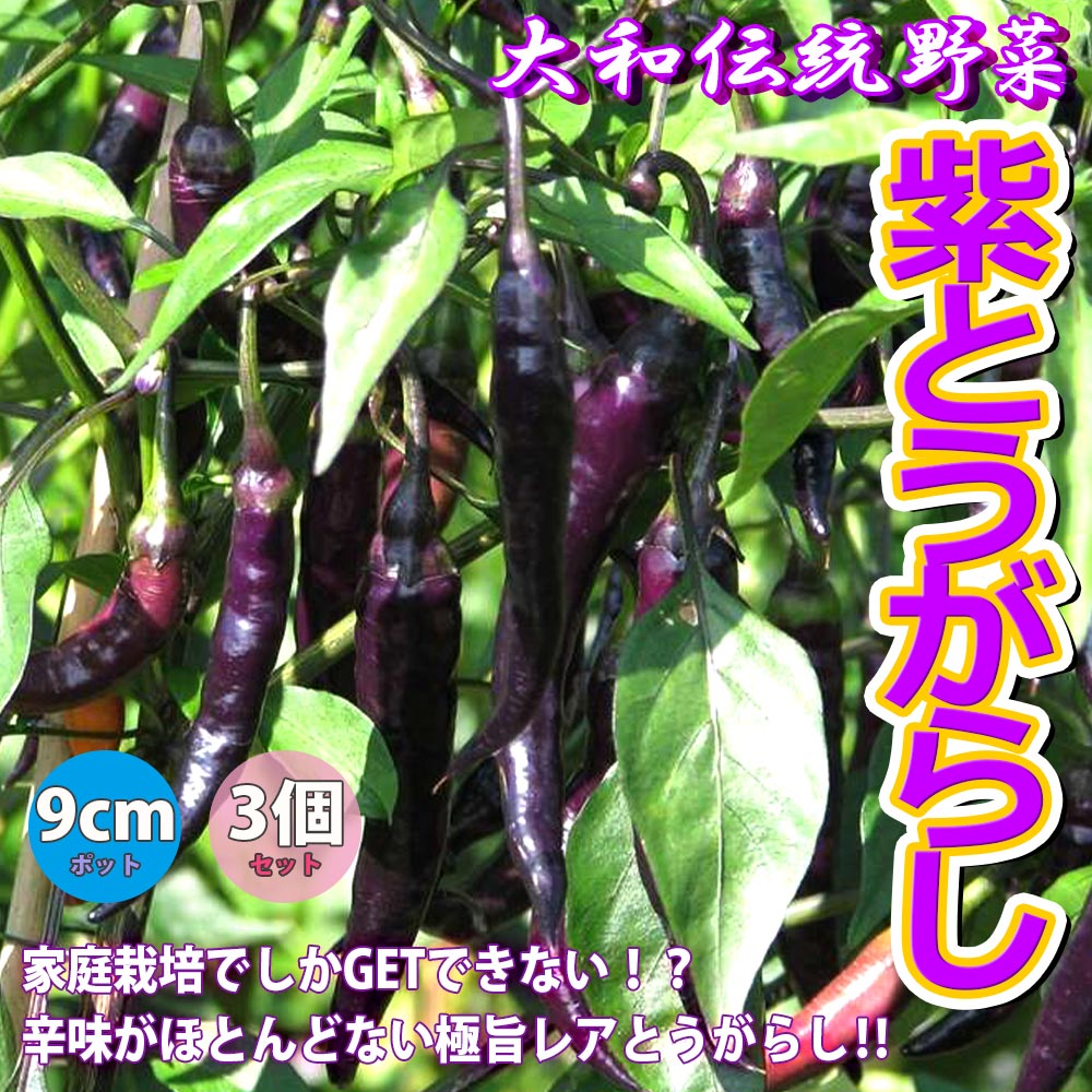 紫とうがらし(大和伝統野菜)【野菜 自根苗9cmポット/3個セット】