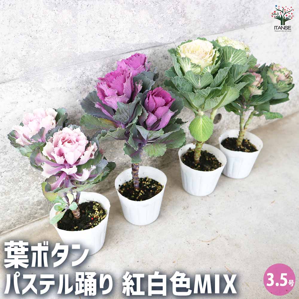 葉ボタン パステル踊り 紅白色MIX2個~ 【花苗 3.5号ポット】