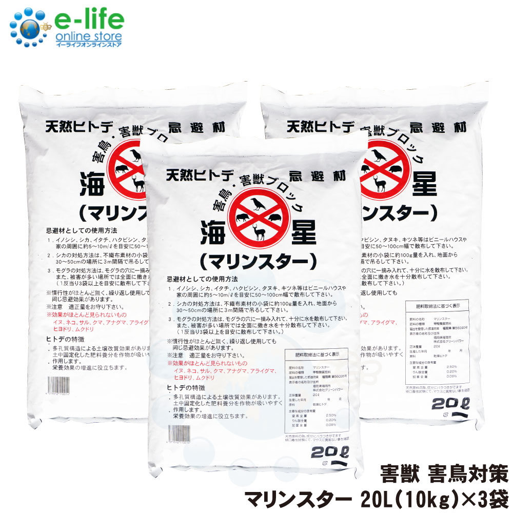 イノシシ シカ 対策 マリンスター 20L(10kg)×3袋 ヒトデ 忌避 猪 鹿 対策 モグラ カラス ハト 忌避剤 畑 被害 ...