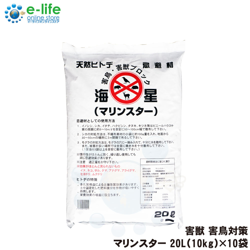 イノシシ シカ 対策 マリンスター 20L(10kg)×10袋 ヒトデ 忌避 モグラ カラス ハト 忌避剤 畑 被害 効果