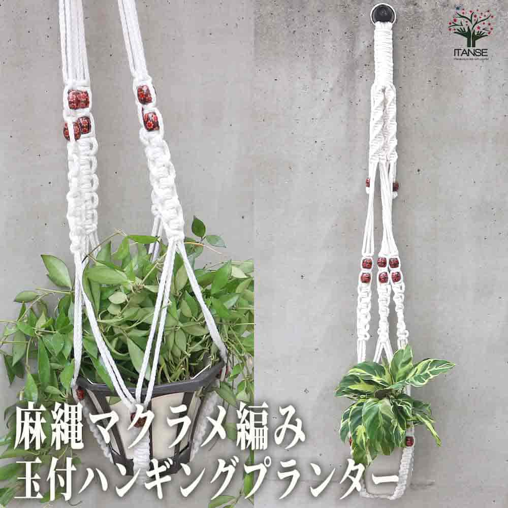 麻縄マクラメ編み 4番 玉付ハンギングプランター 【ハンギング資材 】