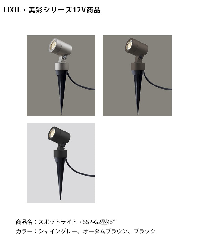 【仕様変更】【LIXIL美彩12V照明】スパイクスポットライト SSP-G2型45° /ケーブル長3m(防水コネクタ付)消費電力:...