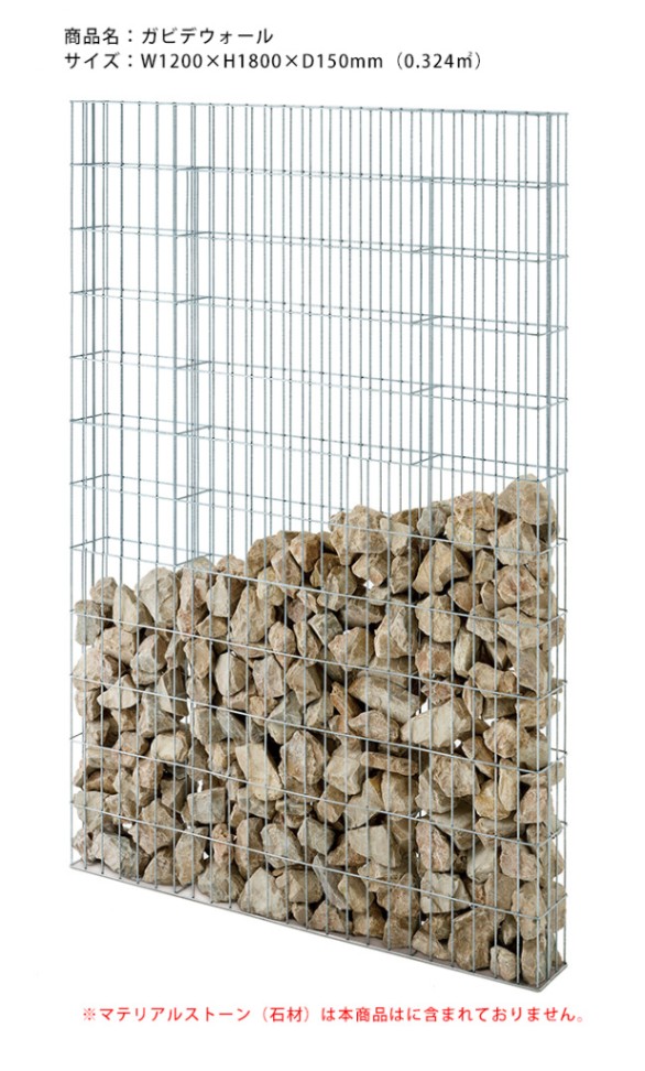 ガビデウォールW600×H1800×D150mm・線径Φ4mm 網目:50×150mm・品番:ES-GABIW-H1800M・日本...