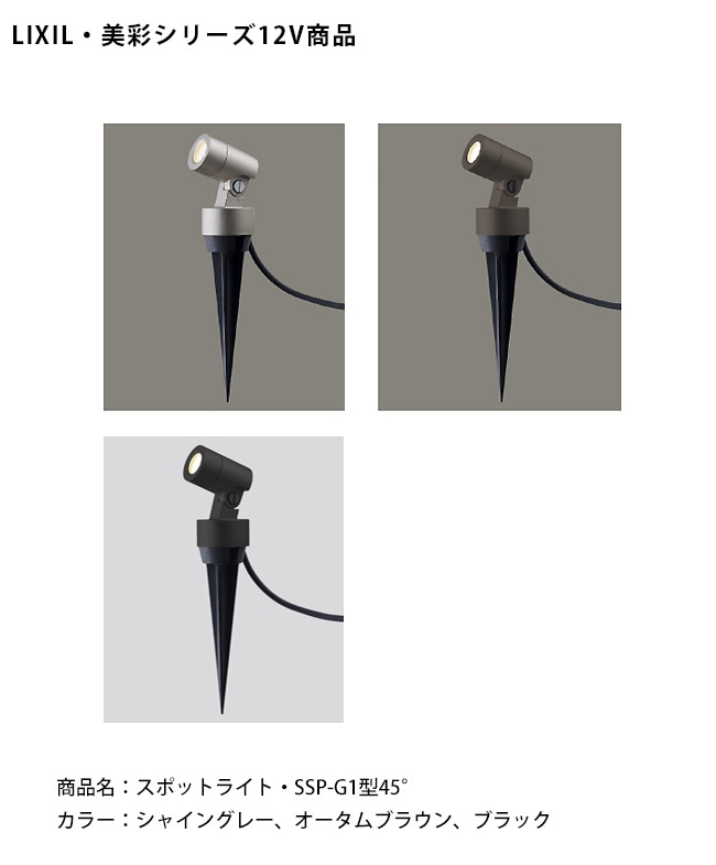 【仕様変更】【LIXIL美彩12V照明】スパイクスポットライト SSP-G1型45° /ケーブル長3m(防水コネクタ付)消費電力:...