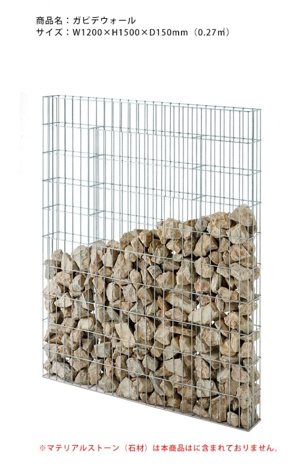 ガビデウォールW1200×H1500×D150mm・線径Φ4mm 網目:50×150mm・品番:ES-GABIW-H1500L・日...