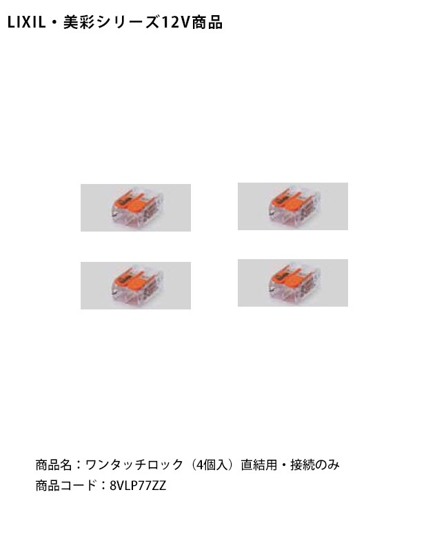 【LIXIL美彩12V照明オプション】ワンタッチロック(4個入り)直結用(接続のみ)/商品コード:8VLP77ZZ【リクシル12V...