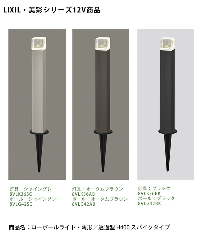 【仕様変更】【LIXIL美彩12V照明】ローポールライト・ 角形/透過型 H400 スパイクタイプ/消費電力:3.0W 器具光束:...