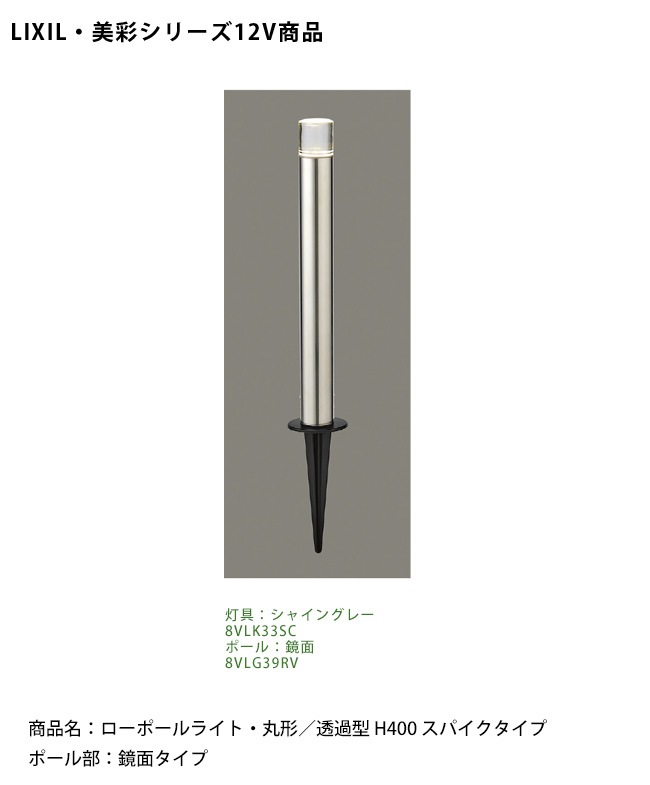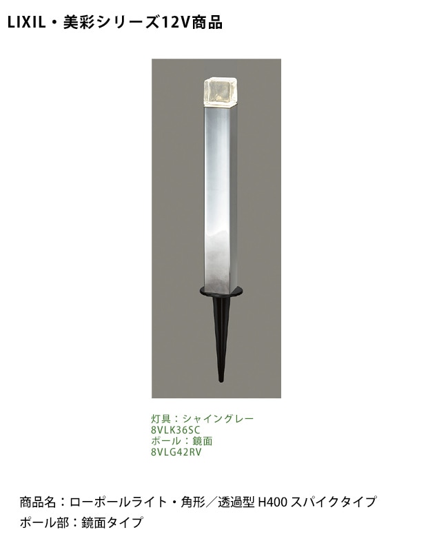 【LIXIL美彩12V照明】ガーデンポールライトH400 スパイクタイプ/消費電力:6.0W器具光束:299lm/商品コード:8V...