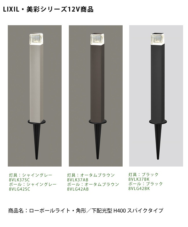 【LIXIL美彩12V照明】ローポールライト・角形/下配光型 H400 スパイクタイプ/消費電力:3.0W 器具光束:84lm/商...