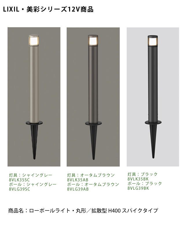 【仕様変更】【LIXIL美彩12V照明】ローポールライト・丸形/拡散型 H400 スパイクタイプ/消費電力:3.0W 器具光束:3...