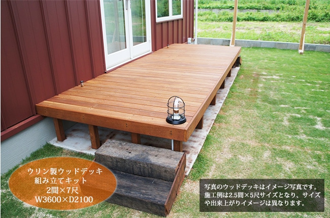 ウリン製ウッドデッキ 組み立てキット/2間×7尺タイプ/サイズ:W3600(W3571)×D2100×H500【腐らない頑強なウリ...