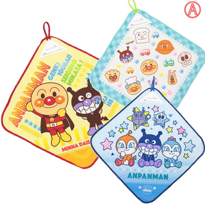 ループタオル アンパンマン 3枚組 ループ付き ハンドタオル ひも付き ばいきんまん ドキンちゃん コキンちゃん ナストーコーポレ...