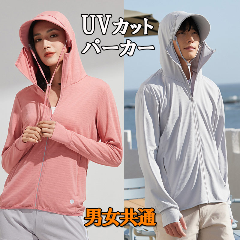 360度紫外線対策 着るだけでUV対策!つば広いフード 首や顔まで守れる万能パーカー 伸縮性 通気性 uv パーカー 指穴 首元 ...
