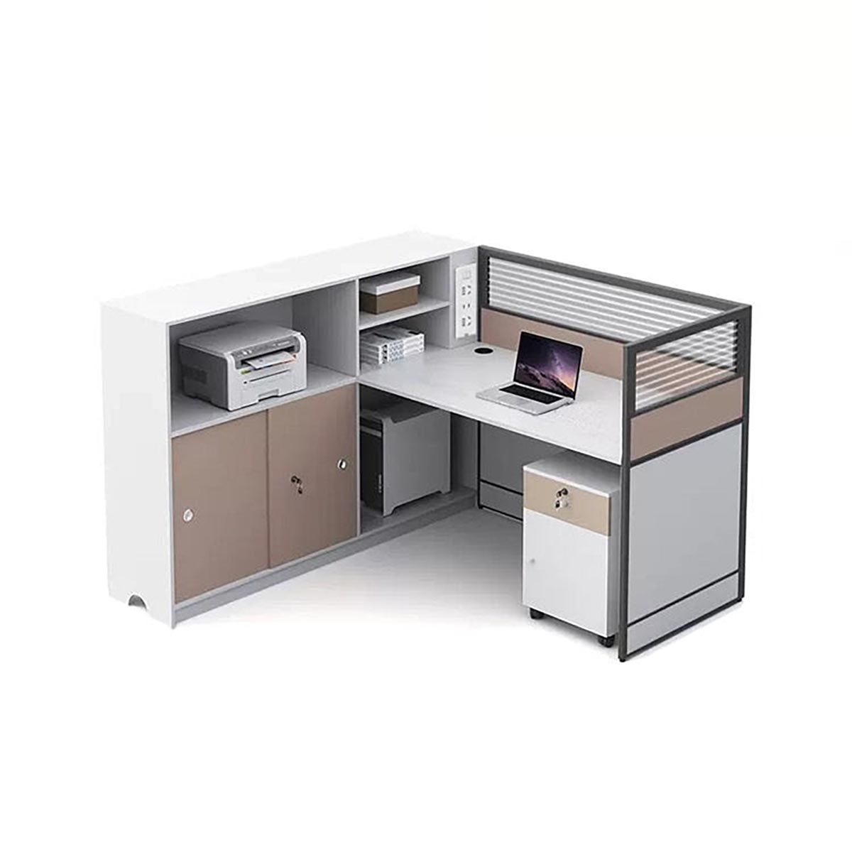 福居家具 法人様向け オフィスデスク シンプルデザイン メラミン化粧板 ワイヤレス充電器 卓上パーテーション サイドキャビネット ...